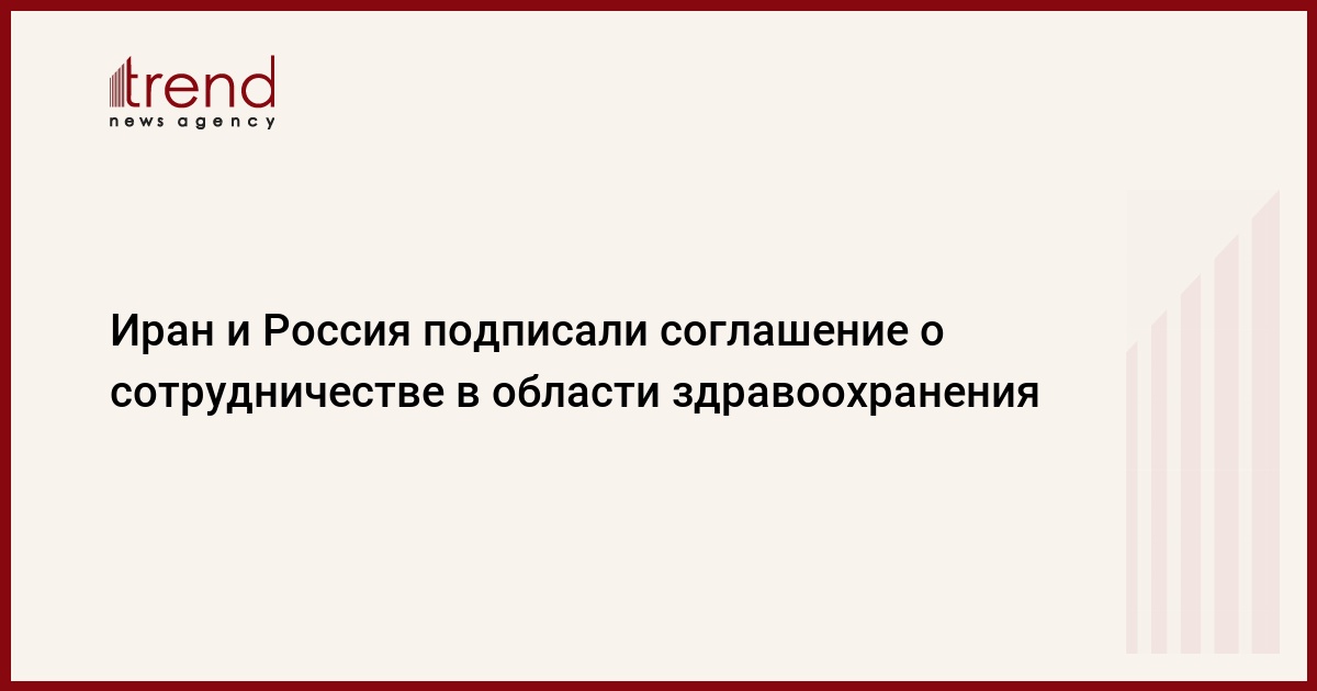 БАКУ /Trend/ - Документ соглашения о начальном сотрудничестве в области здравоохранения Исламской Республики Иран и Российской Федерации был подписан во время церемонии закрытия 17-ого заседания Совместной комиссии по экономическому сотрудничеству, передает Trend.