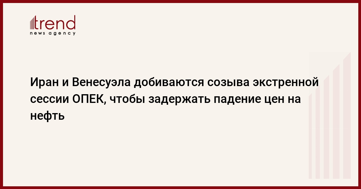 "В минувшую среду министр нефти Ирана сообщил, что Тегеран приступил к консультациям в ОПЕК о желательности созыва экстренной сессии, так как цена барреля смеси Брент упала ниже 100 долларов. Сегодня позицию Ирана поддержала Венесуэла. Все говорит о том, что внутри ОПЕК усиливаются голоса в пользу сокращения поставок нефти на мировой рынок в целях затормозить ее обесценивание", - заметил собеседник ИТАР-ТАСС.