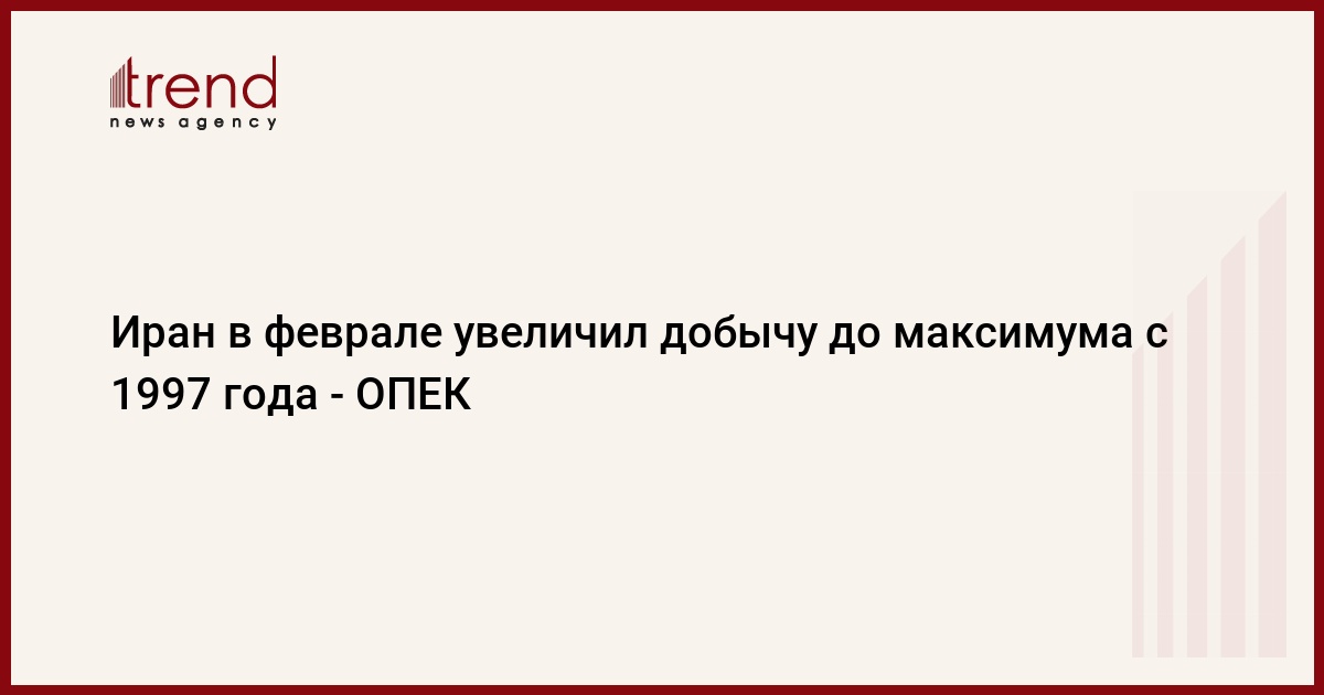 Добыча Ирана в феврале достигла 3,132 миллиона баррелей в сутки, увеличившись на 187,8 тысяч баррелей в день, что является рекордным для региона показателем, говорится в ежемесячном докладе ОПЕК, передает РИА Новости.