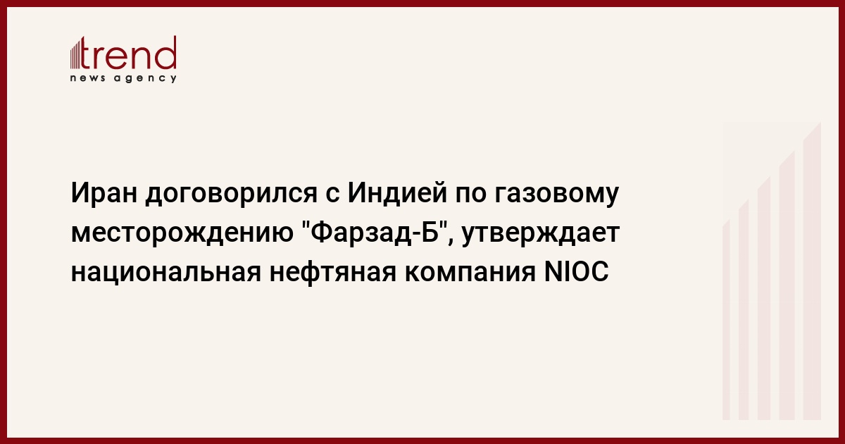 БАКУ/Trend/ - Иран договорился с Индией по вопросу разработки газового месторождения "Фарзад-Б", являющегося совместным с Саудовской Аравией на юге Ирана в Персидском заливе.