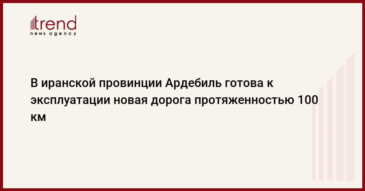 БАКУ /Trend/ - В провинции Ардебиль на север-западе Ирана готова к вводу в эксплуатацию новая дорога протяженностью 100 километров.