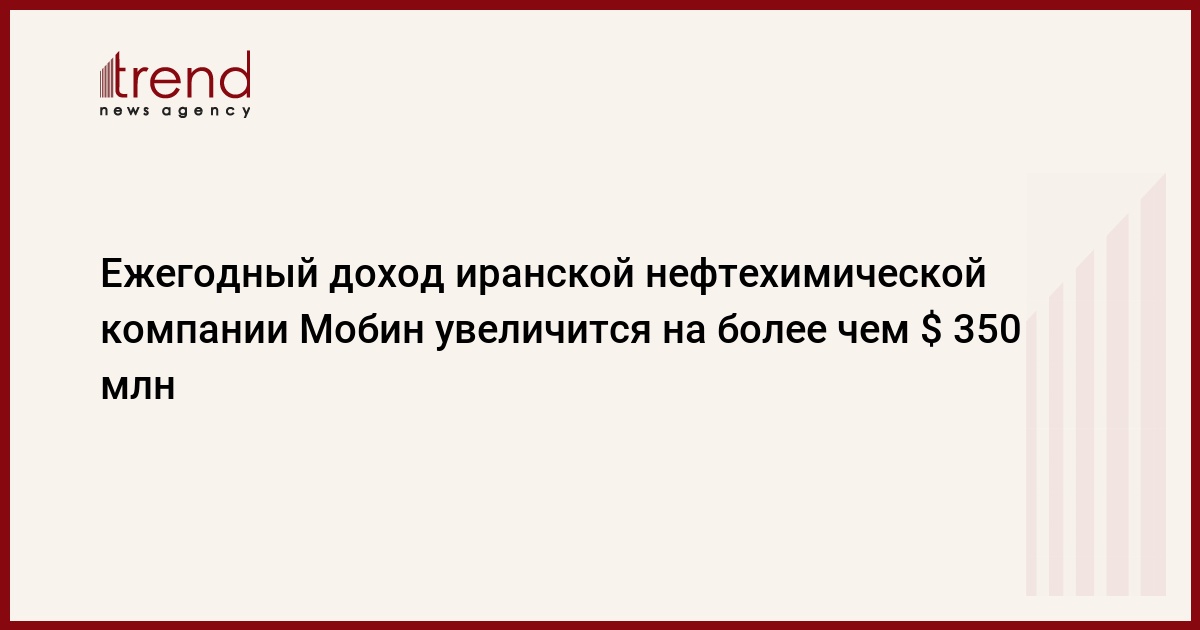 БАКУ /Trend/ - Годовой ( 21 марта 2019 - 21 марта 2020 ) доход иранской нефтехимической компании Мобин в особой энергетической экономической зоне Парс провинции Хузестан на юго-западе Ирана увеличится на 15 триллионов риалов (около 357 миллионов долларов).