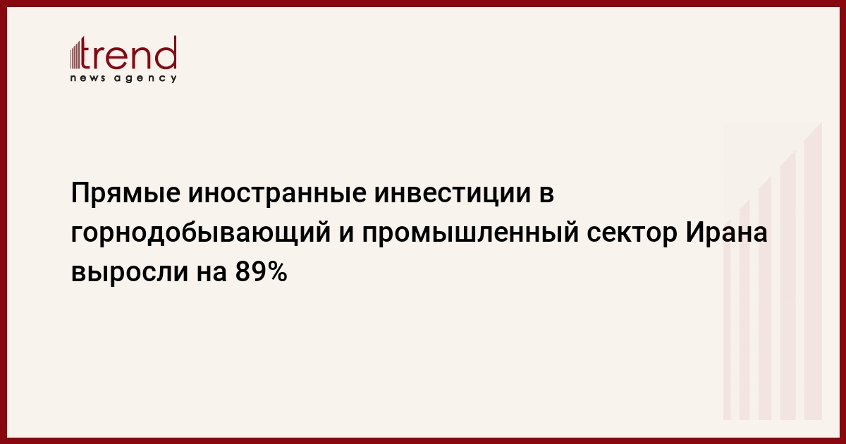 Статистика Министерства промышленности, горнодобывающей промышленности и торговли показала, что прямые иностранные инвестиции (ПИИ) в горнодобывающий и промышленный сектор выросли на 89% за первые 10 месяцев текущего года (с 21 марта 2020 по 19 января 2021), передает Trend со ссылкой на "Иран.ru".