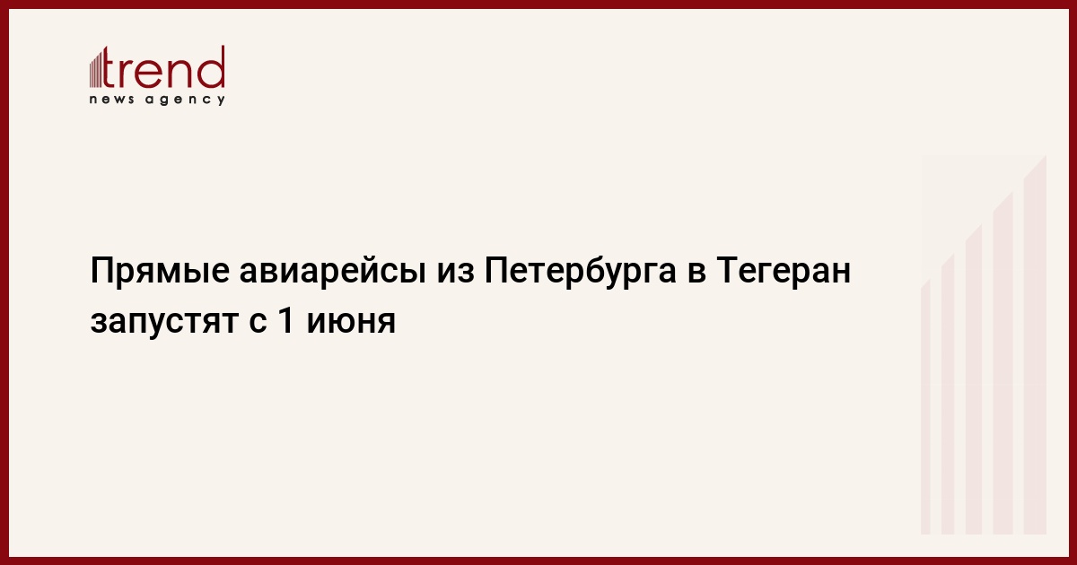 Прямые регулярные авиарейсы запустят между Санкт-Петербургом и Тегераном, сообщила в четверг пресс-служба управляющей компании аэропорта Пулково "Воздушные ворота Северной столицы" в своем Telegram-канале, передает передает Trend со ссылкой на ТАСС.