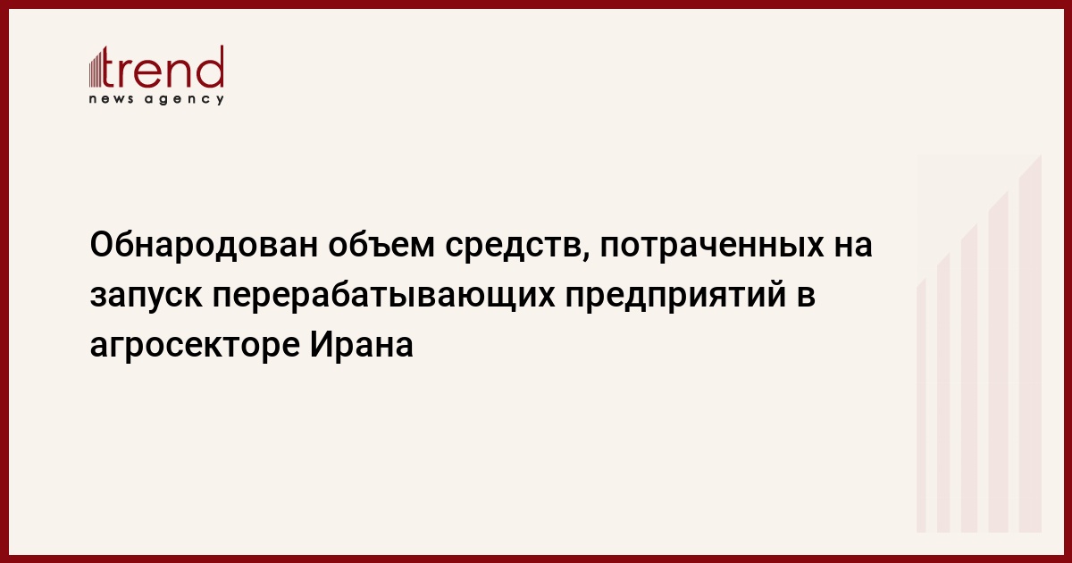 БАКУ /Trend/ - В период с 20 марта по 3 ноября 2024 года на запуск перерабатывающих предприятий в сельскохозяйственном секторе Ирана было потрачено 128 триллионов риалов (около 290 миллионов долларов).
