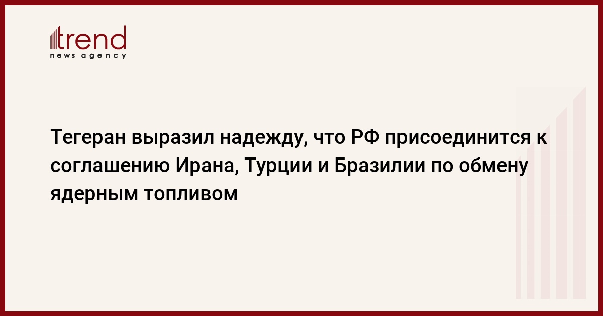 Тегеран выразил надежду, что РФ присоединится к соглашению между Ираном, Турцией и Бразилией по обмену ядерным топливом, заявил сегодня на пресс-конференции посол Ирана в РФ Махмуд Реза Саджади. Он поблагодарил российскую сторону за то, что именно она выступила инициатором этого соглашения. В то же время дипломат отметил, что в Иране удивлены готовностью России присоединиться к резолюции по новым санкциям в отношении Тегерана, пишет РБК.