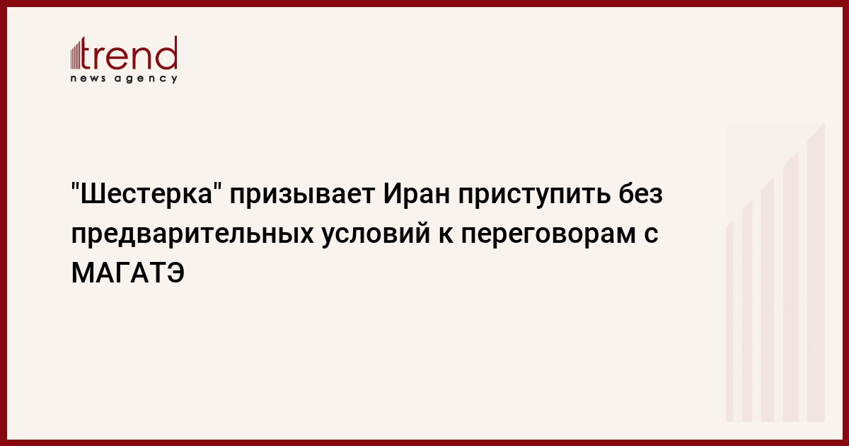 "Шестерка" (5 постоянных членов СБ ООН и Германия) призывает Иран приступить без предварительных условий к переговорам с МАГАТЭ для восстановления доверия к иранской ядерной программе. Об этом говорится в совместном заявлении группы "пять плюс один" от 8 марта, размещенном сегодня на сайте МИД РФ, пишет ИТАР-ТАСС.