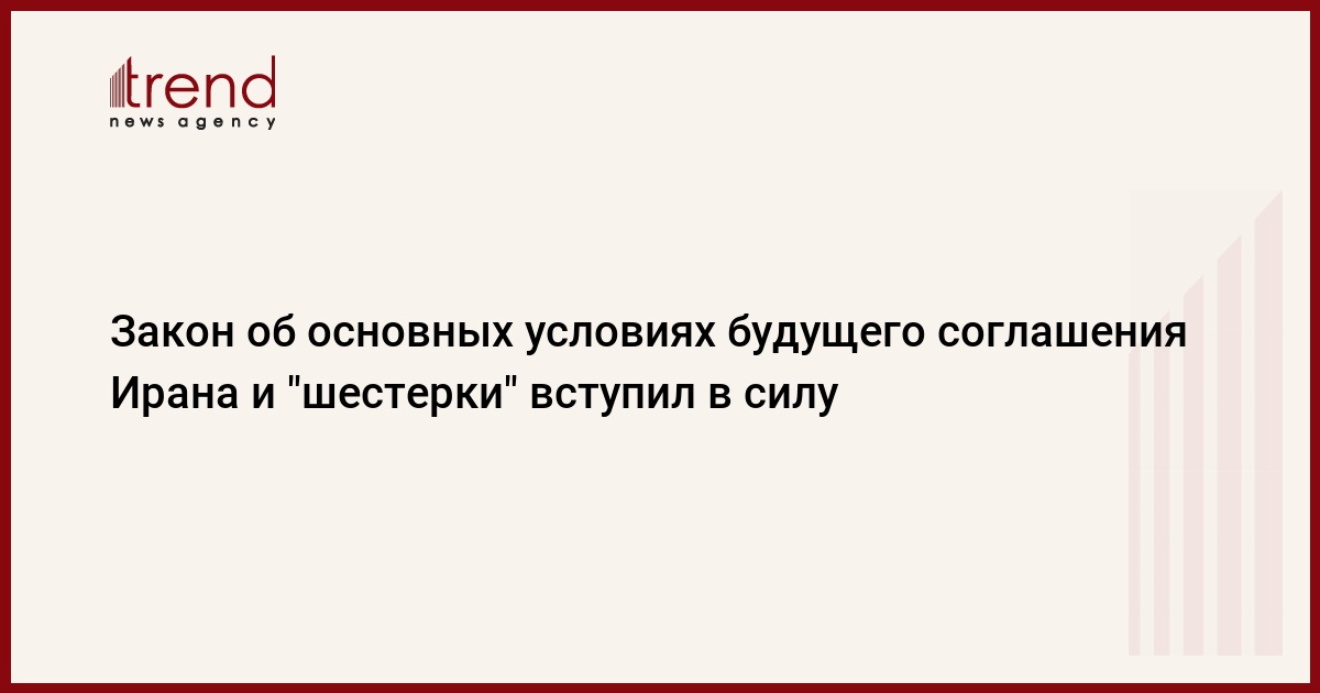 "Наблюдательный совет большинством голосов сегодня одобрил закон, предусматривающий одновременную отмену всех санкций в отношении Исламской Республики с вступлением в силу всеобъемлющего соглашения между ИРИ и "шестеркой" (пять постоянных членов СБ ООН и Германия) по иранской ядерной программе", - заявил в интервью телеканалу Press TV один из членов руководящего органа ИРИ Неджатолла Эбрахимиан. "Закон признан соответствующим Конституции ИРИ", - добавил он.