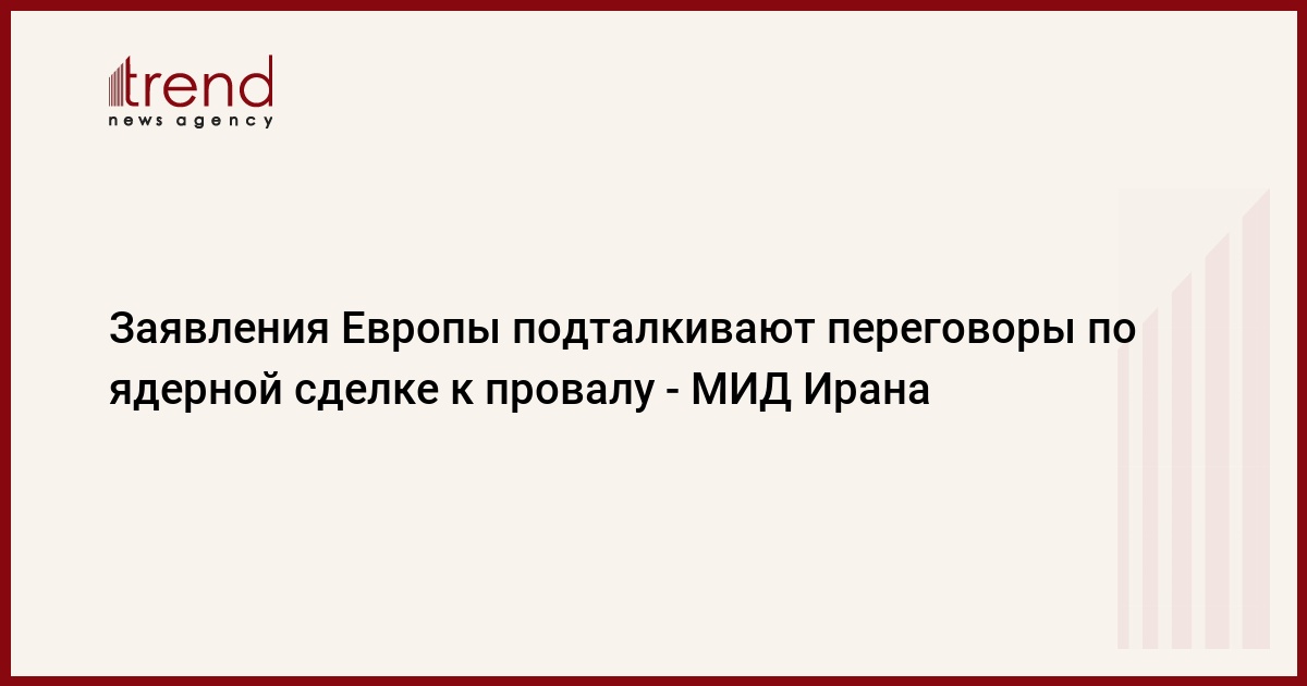 Заявления европейской стороны с критикой позиции Тегерана являются шагом, подталкивающим переговоры по ядерной сделке к провалу. Об этом заявил в субботу официальный представитель МИД Ирана Насер Канани Чафи, передает Trend со ссылкой на ТАСС.
