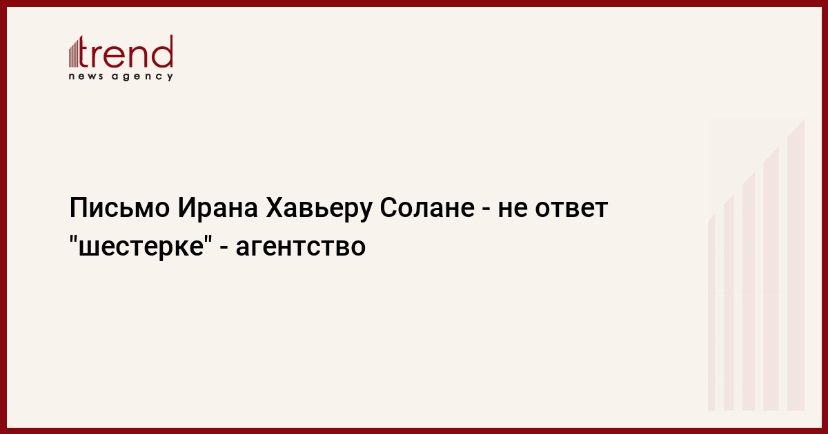 Письмо, переданное иранскими властями во вторник представителю ЕС по внешней политике и безопасности Хавьеру Солане, не является ответом на предложения "шестерки" международных посредников по решению иранской ядерной проблемы, сообщает агентство Франс Пресс со ссылкой на источник в Высшем совете национальной безопасности (ВСНБ) Ирана.