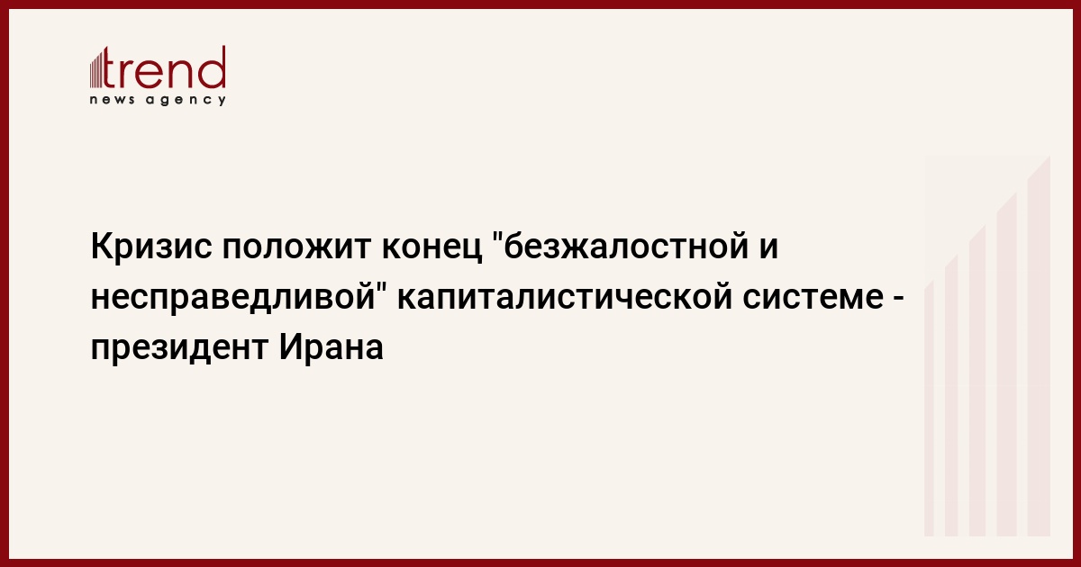 Глобальный финансовый кризис положит конец "безжалостной и несправедливой" капиталистической системе. Такое мнение высказал президент Ирана Махмуд Ахмади Нежад, передает РБК.