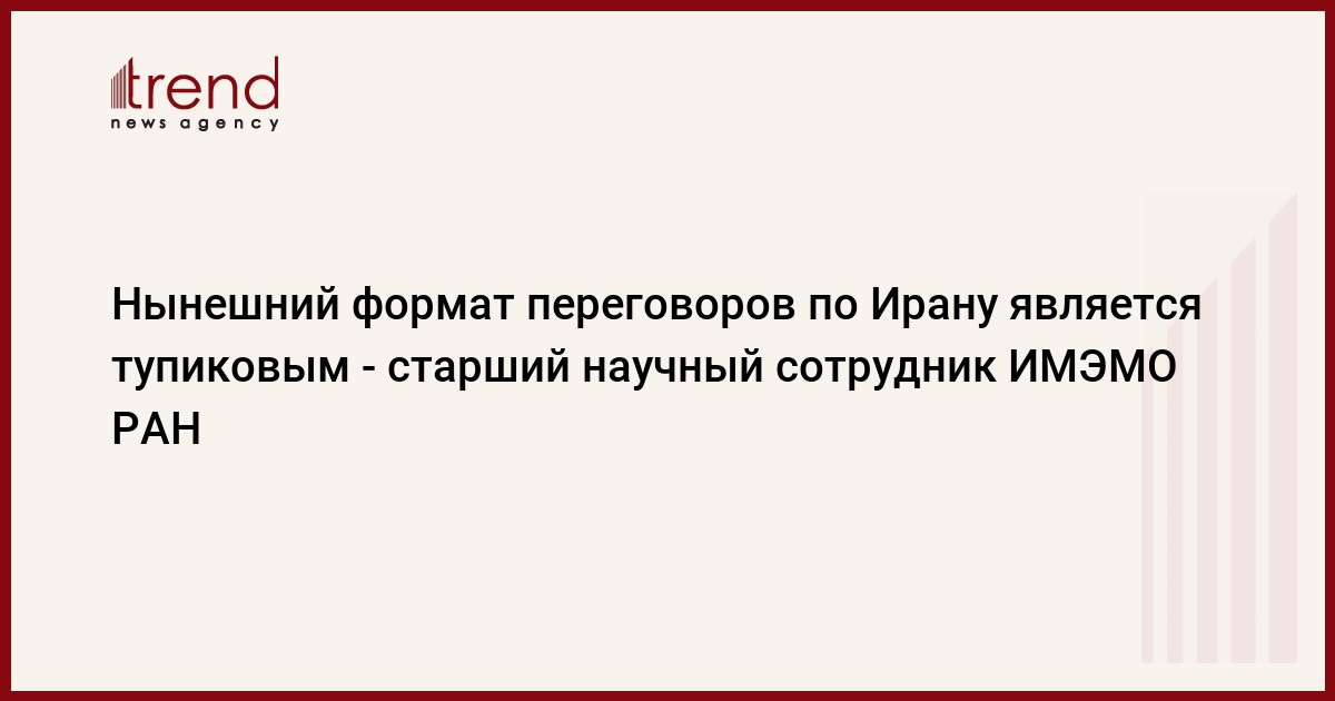 Тем не менее, повторюсь, нынешний формат переговоров по Ирану является тупиковым. Если в таком формате продолжать работать, то будет очень сложно достичь какого-то позитива.