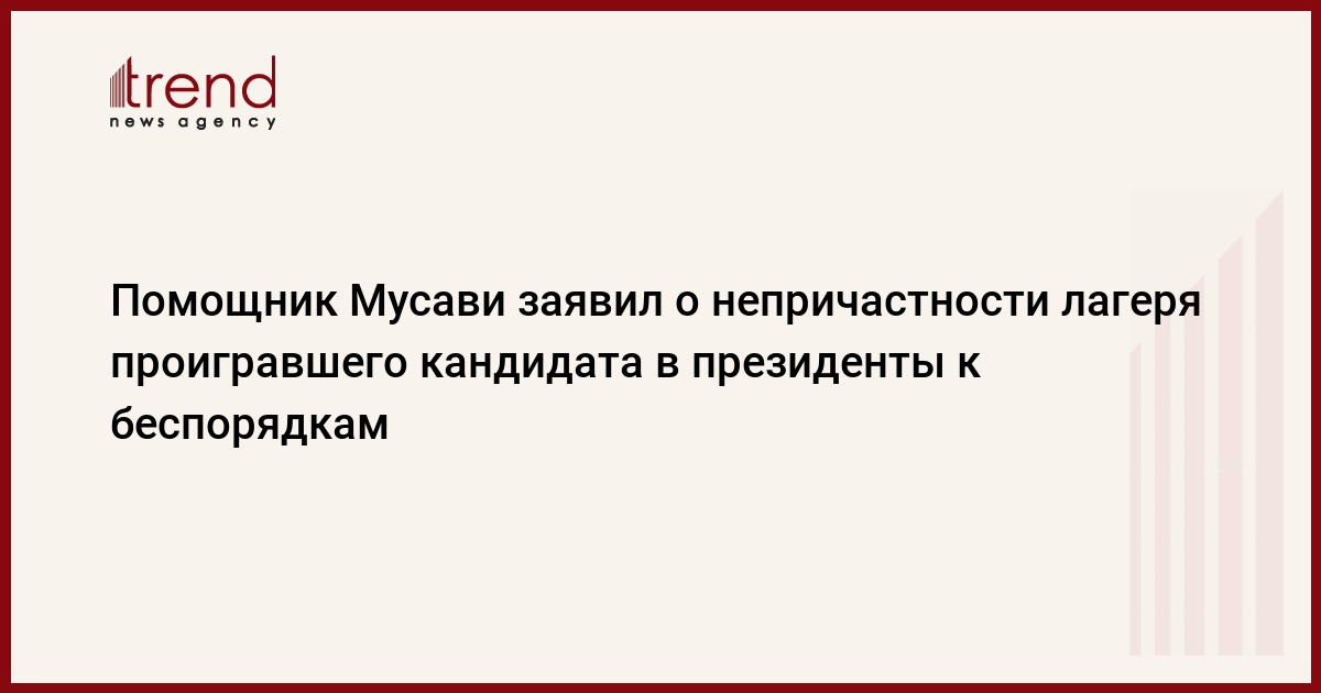 Консультант по предвыборной кампании Мусави в провинции Гюлистан Махмуд Рабийи осудил недавние беспорядки, которые привели к вандализму, поджогам и столкновениям с полицией по всей стране, сообщил сайт Press TV.