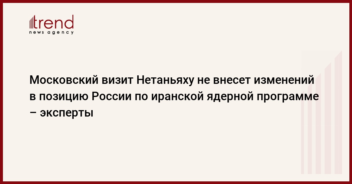 Предстоящий в конце недели визит израильского премьер-министра Биньямина Нетаньяху в Москву не изменит позицию России по иранской ядерной программе, считают эксперты.