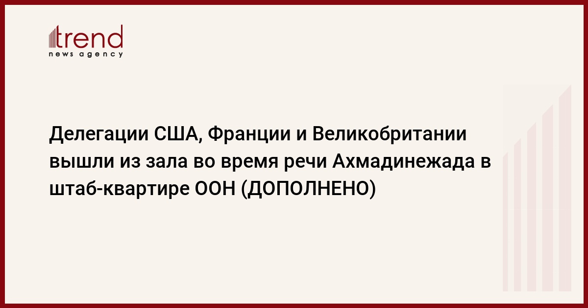 Делегации США, Великобритании и Франции покинули зал Генеральной ассамблеи ООН во время речи президента Ирана Махмуда Ахмадинежада, который в своем выступлении в понедельник обвинил США в двойных стандартах и в том, что Вашингтон разрабатывает ядерное оружие, пишет РИА Новости.