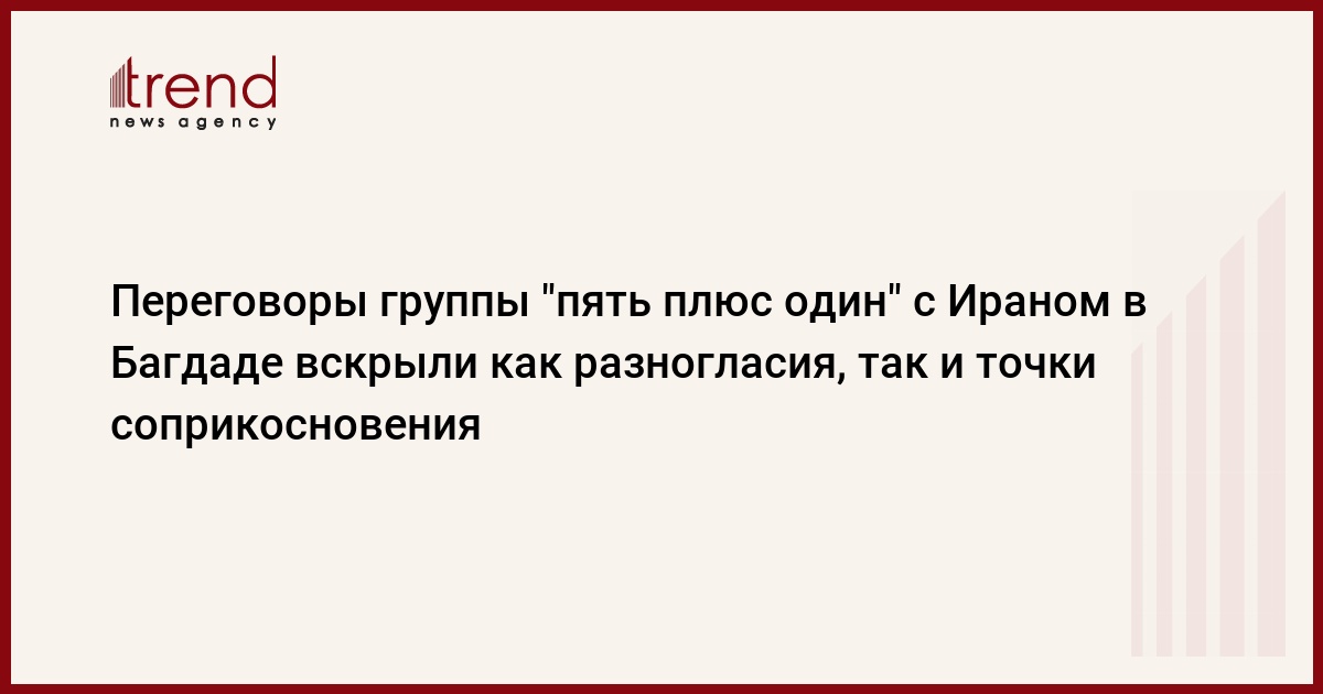 Новый раунд переговоров постоянной пятерки Совета Безопасности ООН и Германии с Ираном, начавшийся в среду в Багдаде, вскрыл как разногласия, так и точки соприкосновения по ядерной проблеме Тегерана. Об этом заявил сегодня в Багдаде представитель властей США, комментируя результаты состоявшихся дискуссий группы "пять плюс один" и Ирана, сообщает ИТАР-ТАСС.