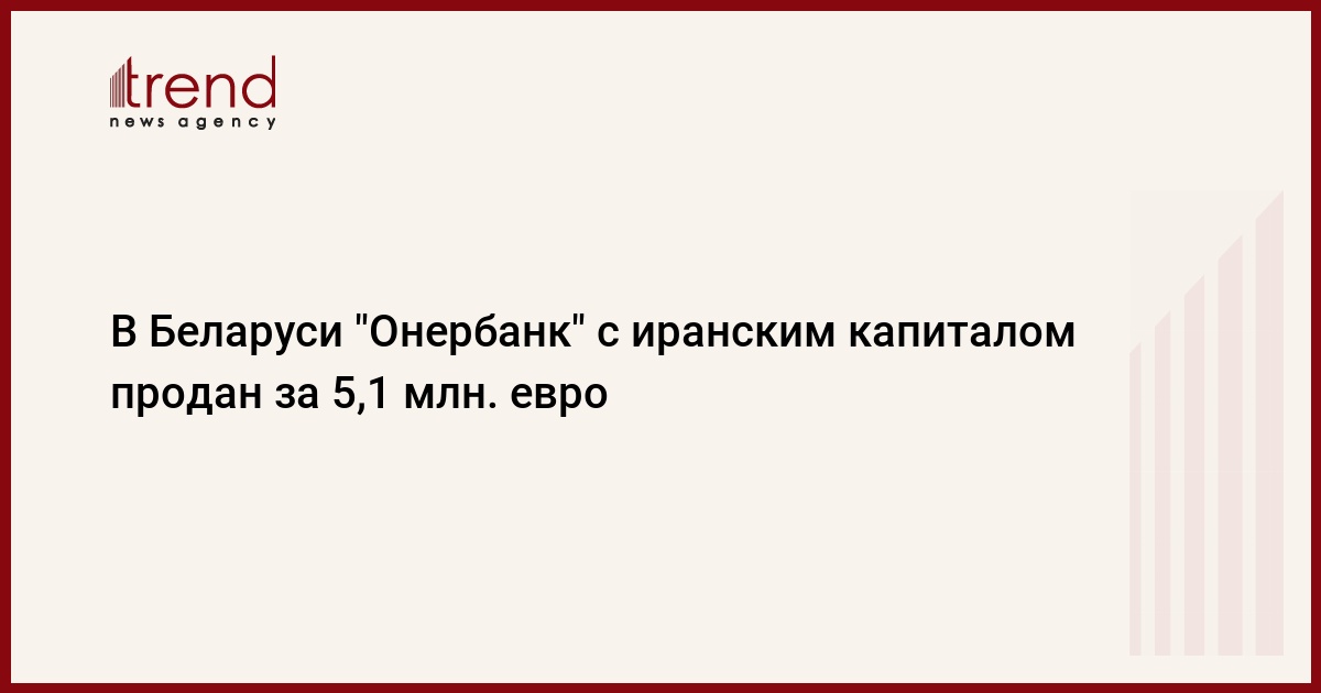 На внебиржевом рынке Республики Беларусь продано 100 процентов уставного фонда ЗАО "Онербанк" за 5,1 миллиона евро. Сделка зарегистрирована 22 января Белорусской валютно-фондовой биржей, сообщает БЕЛТА.