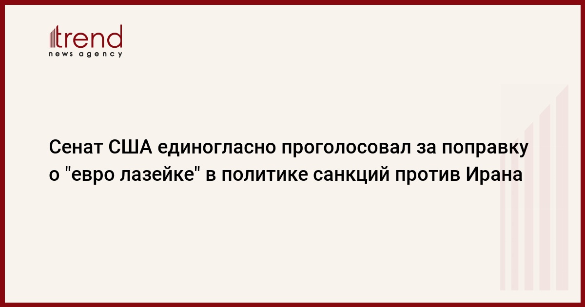 Сенат Соединенных Штатов в субботу утром послал сообщение в Европейский союз (ЕС) относительно Ирана, единогласно приняв поправку, поддерживающую усилия для блокирования доступа Ирана к его золотовалютным резервам и ограничения способности определенных иранских предприятий, таких как Центральный банк Ирана, проводить сделки в евро. Поправка к бюджетной резолюции, подготовленной сенаторами Марком Кирком и Джо Мэнчином, следует за двухпартийным письмом, направленным в прошлом месяце в Евросоюз со стороны 36-и сенаторов. Поправка призывает Совет принять срочные меры по ограничению доступа Ирана к евро, сообщает официальный сайт сенатора Марка Кирка (http://www.kirk.senate.gov).