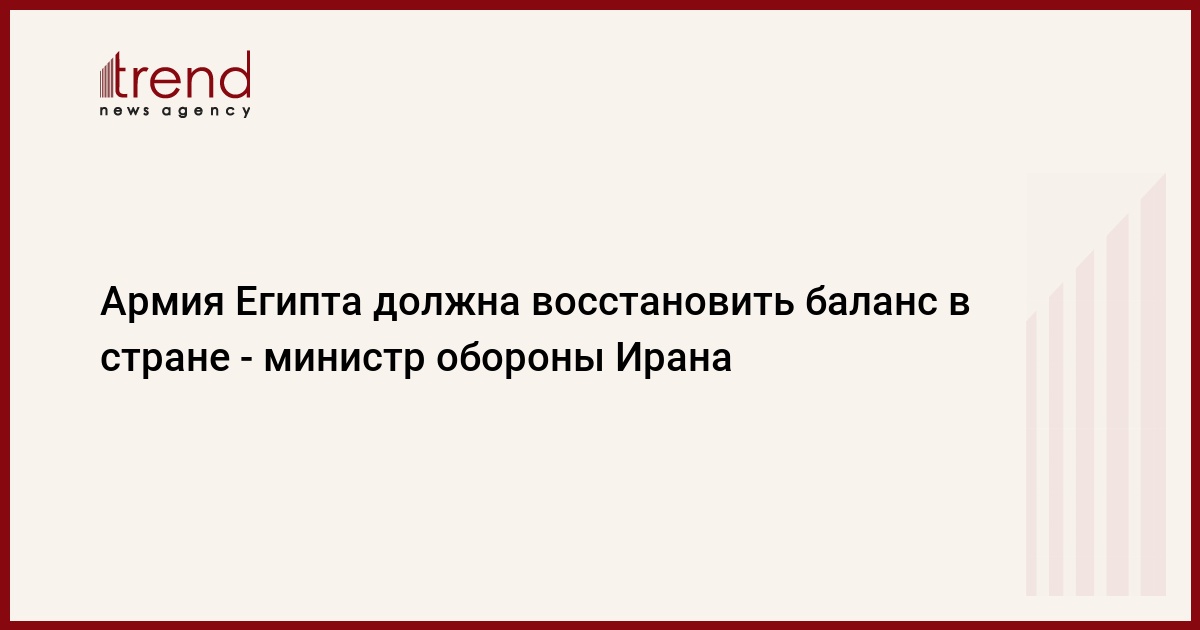 Египетская армия должна восстановить баланс в стране, сообщает в субботу новостное агентство ISNA со ссылкой на новоизбранного министра обороны Ирана Хоссейна Дехгана.