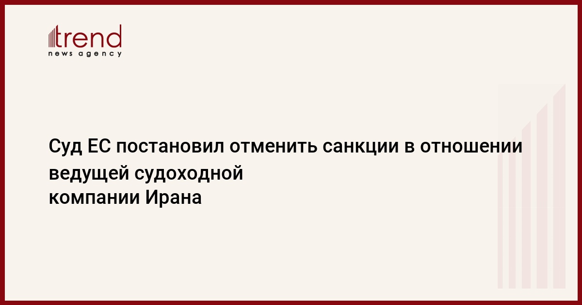 Суд ЕС во вторник постановил отменить санкции Евросоюза в отношении ведущей судоходной компании Ирана IRISL, сообщила брюссельская интернет-газета EUobserver.