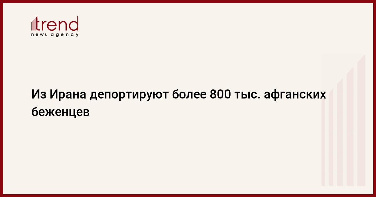 Более 800 тысяч афганских беженцев будет депортировано из Ирана, сообщает в понедельник информационное агентство Mehr News со ссылкой на директора Генерального бюро по делам иностранцев и иностранных иммигрантов Ирана Азиза Каземи.