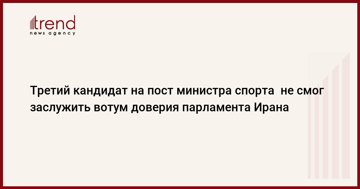 Иранский парламент отверг номинанта президента Хасана Рухани на пост министра по делам молодежи и спорта Сейеда Насроллах Сажжади, сообщает агентство Mehr.