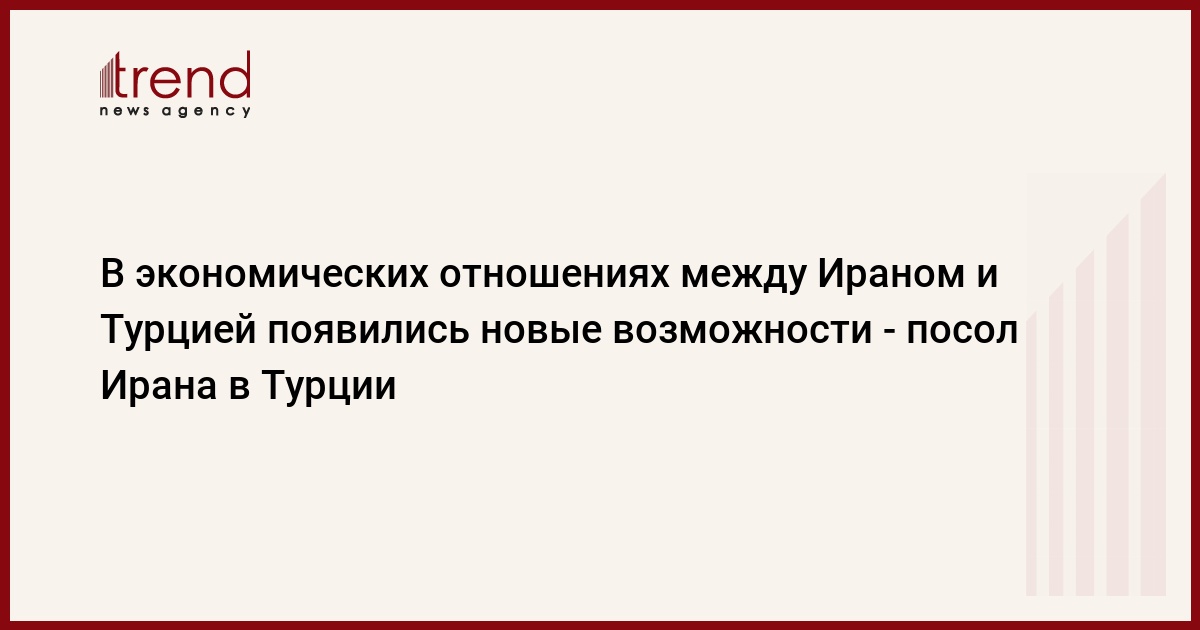 Бигдели подчеркнул, что ирано-турецкие связи развились больше по сравнению с 2010 годом, добавив, что еще больше возросло взаимное доверие и уважение между двумя странами. Посол также подчеркнул рост взаимных инвестиций, а также то, что в ряде сфер торговли между двумя странами был получен новый опыт.