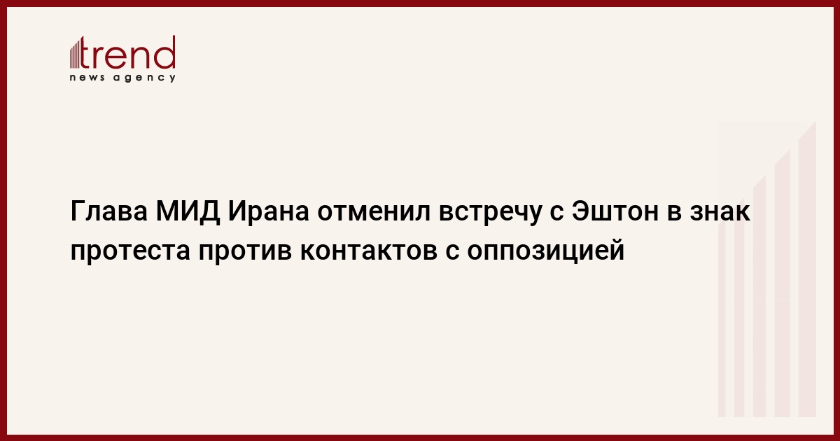 Министр иностранных дел Ирана Мохаммад Джавад Зариф отменил запланированный ужин с главой дипломатии ЕС Кэтрин Эштон в знак протеста против ее встречи с представителями иранской оппозиции во время недавнего визита в страну, передает РИА Новости со ссылкой на агентство Ассошиэйтед Пресс.
