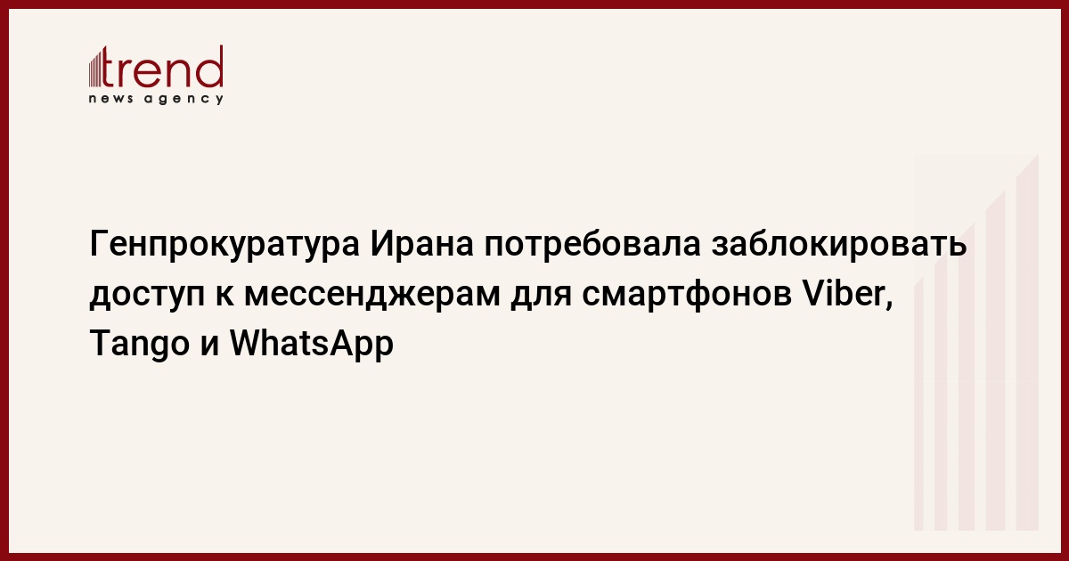 БАКУ /Trend/ - Генеральный прокурор Ирана Голам-Хосейн Мохсени-Эжеи в распорядился заблокировать в стране доступ к мессенджерам для смартфонов Viber, Tango и WhatsApp, сообщает в воскресенье иранский телеканал PressTV.