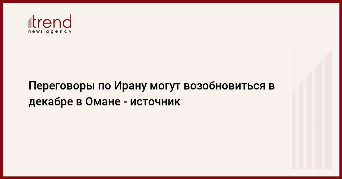 Переговоры по иранской ядерной программе могут возобновиться в середине декабря, возможно, в Омане, сообщает агентство Рейтер со ссылкой на источник, близкий к переговорам, передает РИА Новости.