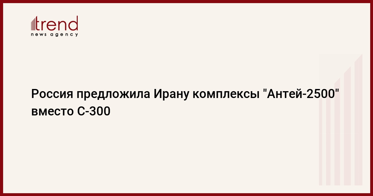Российская сторона предложила Ирану зенитные ракетные системы "Антей-2500" вместо не поставленных систем С-300, сообщил в понедельник журналистам гендиректор "Ростеха" Сергей Чемезов, передает агентство "Интерфакс".