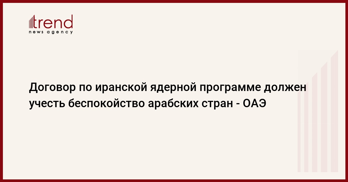 Окончательное соглашение по поводу иранской ядерной программы должно учесть обеспокоенность арабских стран Персидского залива, заявил наследный принц ОАЭ шейх Мухаммед бен Заед Аль Нахайян, передает РИА Новости со ссылкой на эмиратское информационное агентство WAM.