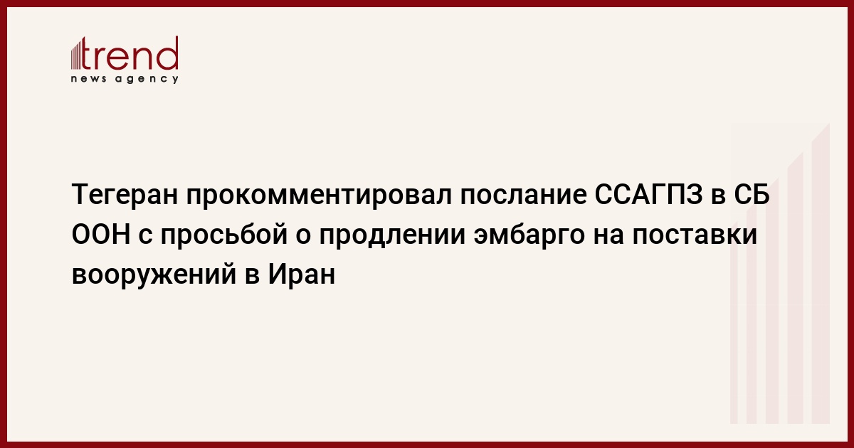 Послание Совета сотрудничества арабских государств Персидского залива (ССАГПЗ) в Совет Безопасности (СБ) ООН с просьбой о продлении эмбарго на поставки вооружений в Иран было продиктовано и сделано в одностороннем порядке. Об этом, как передает Trend со ссылкой на ИРНА, заявил официальный представитель МИД Ирана Аббас Мусави.