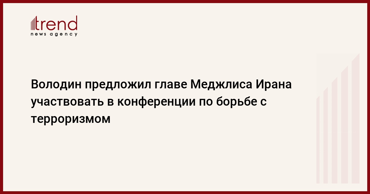 Спикер Госдумы Вячеслав Володин пригласил председателя Собрания исламского совета Ирана Мохаммада Багера Галибафа принять участие в конференции спикеров парламентов по противодействию терроризму и укреплению регионального взаимодействия, которая пройдет в апреле в Москве, передает Trend со ссылкой на ТАСС.