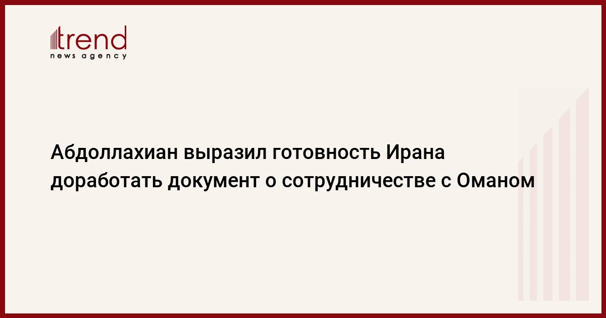 БАКУ /Trend/ - Министр иностранных дел Ирана Хосейн Амир-Абдоллахиан выразил готовность Исламской Республики доработать положения документа о стратегическом всестороннем сотрудничестве между Тегераном и Маскатом.