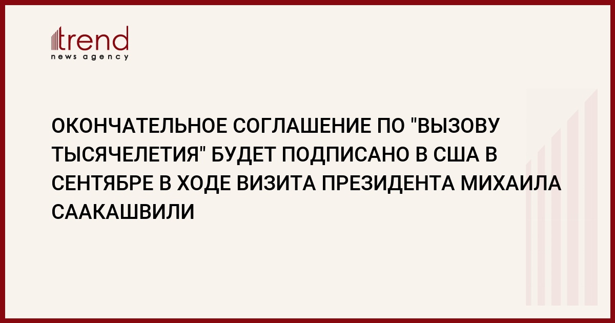 (Кавказ-Пресс) - Премьер-министр Грузии доволен решением корпорации "Вызовы тысячелетия" о выделении Грузии 3000 миллионов долларов. Как заявил сегодня в ходе заседания правительства Зураб Hогаидели, правительство США одобрило программу, переговоры по которой завершились три недели назад.