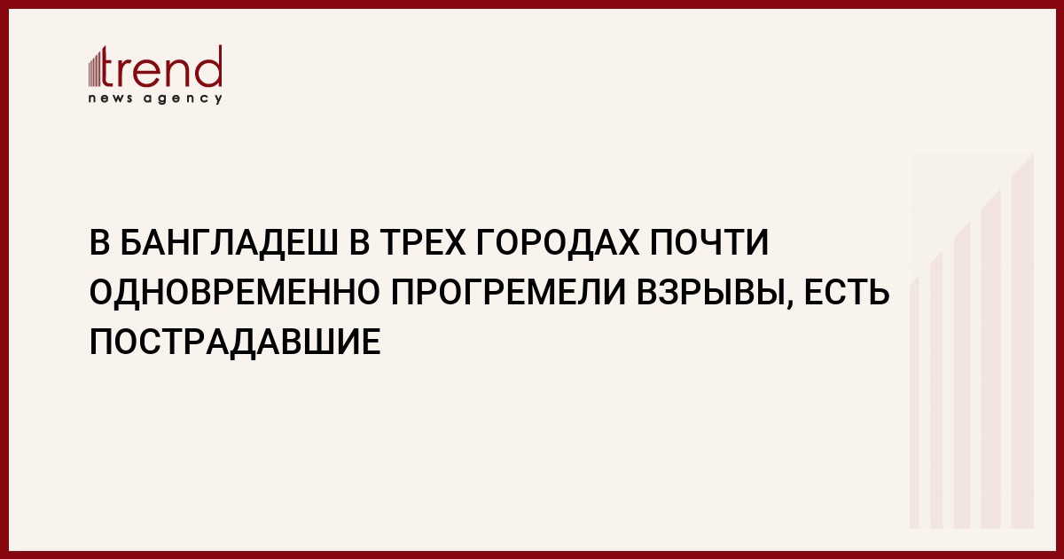 (АР) В Бангладеш в трех городах практически одновременно прогремели взрывы, сообщило местное телевидение. Взрывные устройства сработали в зданиях судов во втором по величине г.Читтагонг, а также в городах Чандпур и Лаксмипур, расположенных на востоке страны.