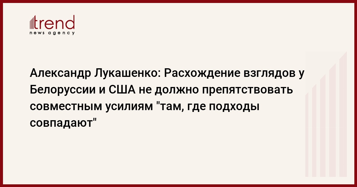Президент Белоруссии Александр Лукашенко заявил сегодня, что расхождение взглядов по ряду проблем у Белоруссии и США "не должно препятствовать наращиванию совместных усилий там, где наши подходы совпадают".