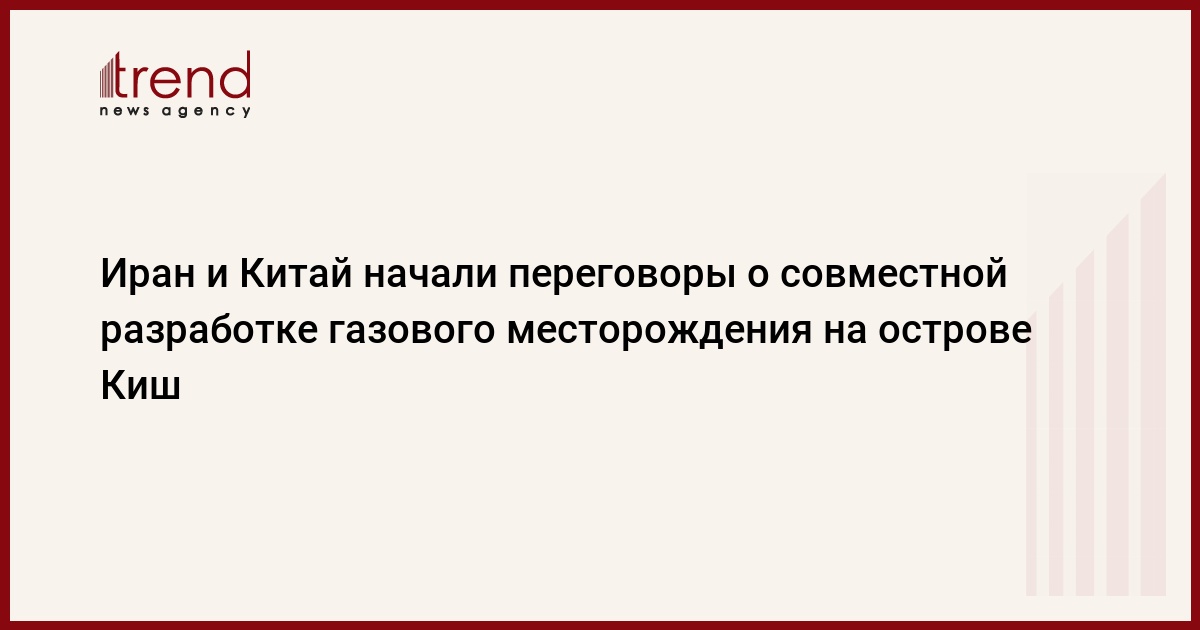 Hациональные нефтяные компании Китая и Ирана начали переговоры о совместной разработке газового месторождения на острове Киш в Персидском заливе, сообщает Trend .