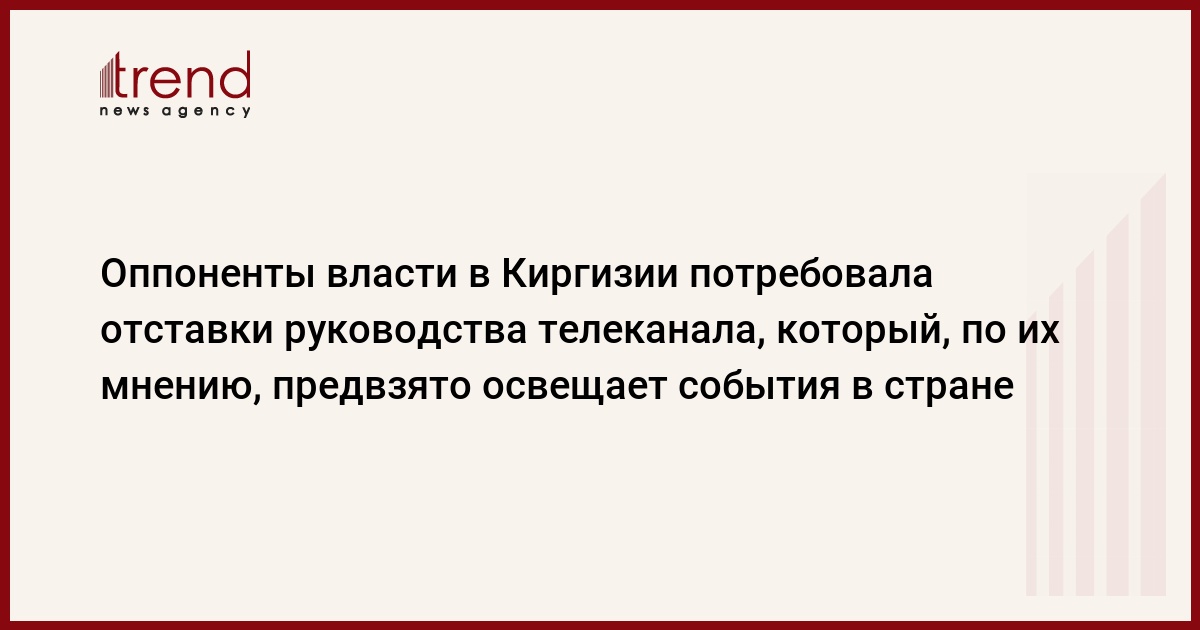 Прибывшие к зданию Государственной телерадиокомпании Киргизии лидеры оппозиции во главе почти тысячной толпы не смогли провести переговоры с руководством канала о выделении им эфирного времени. Путь к зданию митингующим преградили многочисленные подразделения милиции и спецназа, вооруженные пластиковыми щитами и резиновыми дубинками. Оппоненты нынешней власти во время импровизированного митинга своих сторонников возле телецентра потребовали отставки руководства канала, который, по их мнению, предвзято освещает происходящие в стране события, особенно те, которые касаются действий оппозиции.