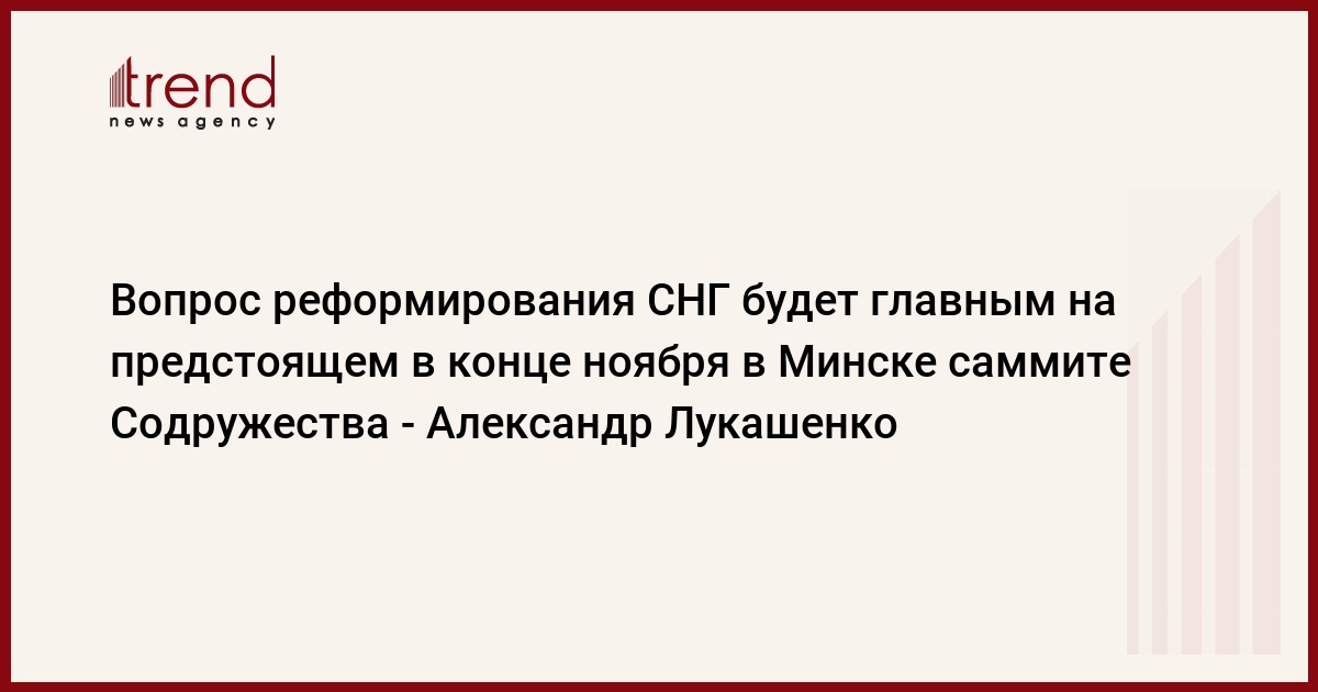 Вопрос реформирования СНГ будет главным на предстоящем в конце ноября в Минске саммите Содружества. Об этом, как передает ИТАР-ТАСС, сообщил сегодня президент Белоруссии Александр Лукашенко.