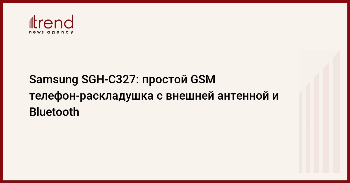Для рыка Канады южнокорейский производитель мобильных телефонов компания Samsung Electronics намерена выпускать мобильный телефон SGH-C327. Данная модель представляет собой четырех диапазонный GSM телефон, выполненный в форм-факторе "раскладушка" с поддержкой беспроводной технологии Bluetooth. Особенностью Samsung SGH-C327 является наличие внешней антенны, которая в современных GSM телефонах встречается очень редко, сообщает Trend со ссылкой на mobile-review.