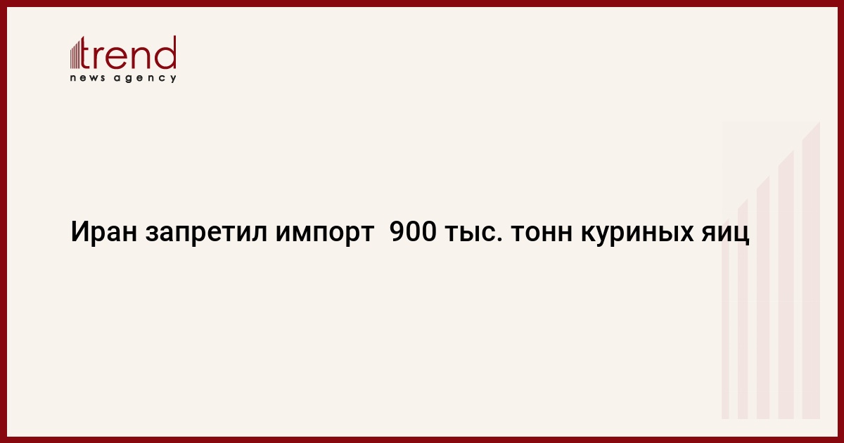 БАКУ /Trend/ - В прошлом году (начиная с марта 2018 года) Иран запретил импорт 900 тысяч тонн куриных яиц из-за птичьего гриппа высокой патогенности.