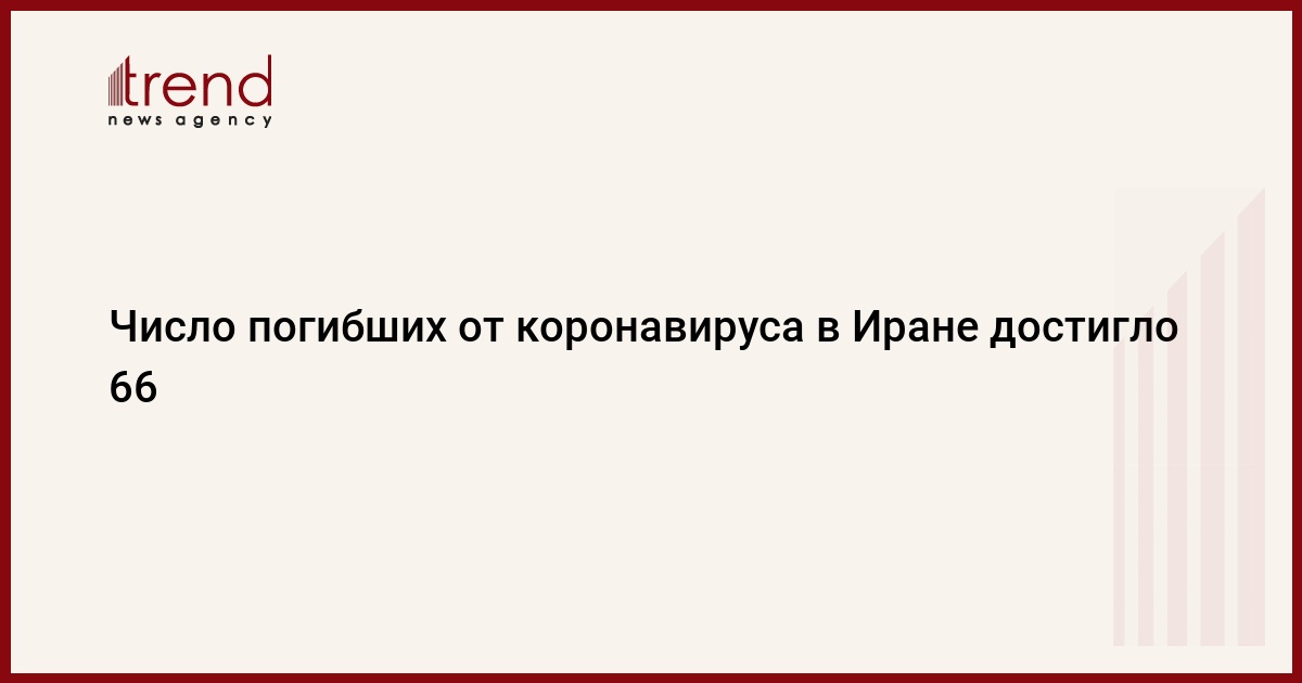 Число жертв коронавируса нового типа (Сovid-19) в Иране достигло 66 человек, выявлены 523 новых случаев заражения болезнью. Как передает Trend со ссылкой на IRNA, об этом сообщил в понедельник замглавы министерства здравоохранения Ирана Алиреза Раиси.