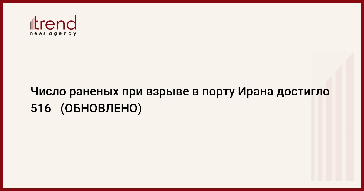 БАКУ /Trend/ - Число пострадавших в результате взрыва в порту Шахид Раджаи в провинции Ормузган на юге Ирана достигло 516 человек.