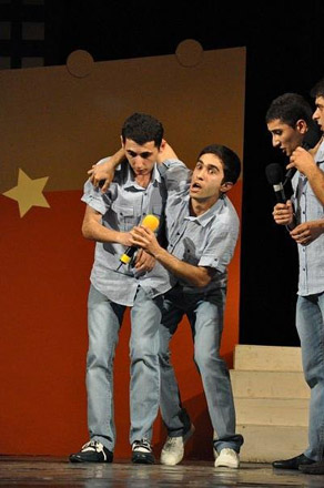 Ребята удивляли танцами, акробатикой и... огромной армией болельщиков! Команду в Астрахани поддержало большое количество местных азербайджанцев. Огромное полотнище флага Азербайджана, свисающее с балкона в зрительном зале, громогласные барабаны и даже специальные майки - болельщики команды КВН "Нефчи-Баку" из азербайджанской общины Астрахани подготовились к мероприятию основательно.