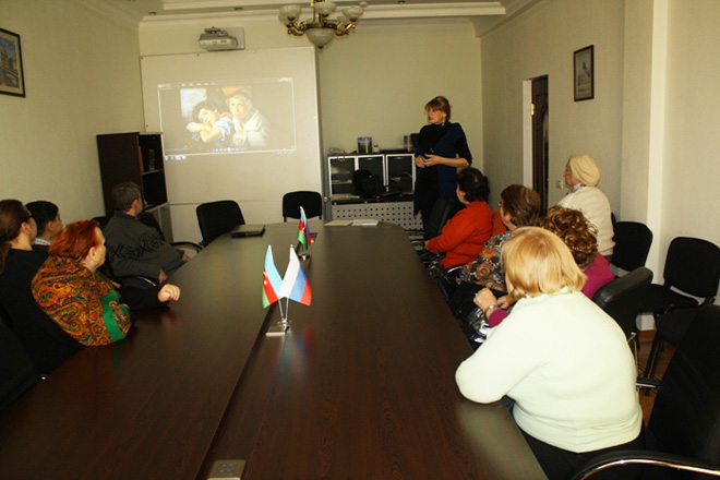 Ведущая цикла "Беседы об искусстве" - доцент Азербайджанской государственной академии художеств Афет Асланова рассказала о жизни и творчестве художника, наследие которого составило значительный пласт российской художественной культуры. В завершение мероприятия А.Асланова ответила на вопросы присутствующих.