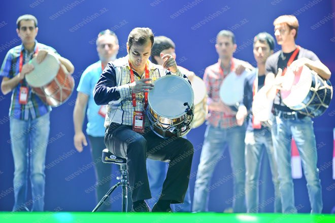 11 мая прошли репетиции ритм-группы "Натиг", которая выступит в интервал-акте первого тура полуфинала конкурса.