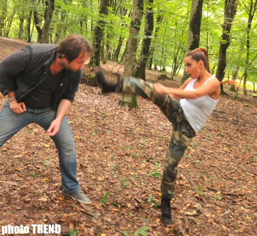 "Для съемок в картине я и Азер Айдемир прошли специальный курс рукопашного боя у известного мастера Арифа Мамедова. Тренировки, как и съемки, проходили очень тяжело, набила массу синяков и шишек, вывихнула руку, но, как говорится, искусство требует жертв. В картине снялся чемпион мира и Европы по шотокан-каратэ Орхан Гейдарли. Эта работа, бесспорно, станет новшеством и поразит зрителей своим оригинальным сюжетом и живыми сценами", - сообщила Trend Life Аян Бабакишиева.