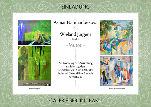В экспозиции будут представлены работы члена Союза художников Азербайджана Эсмер Нариманбековой и немецкого художника Виланда Юргенса (Wieland Jürgens).